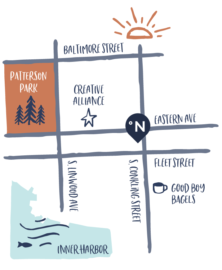 North is conveniently located in the neighborhood of Highlandtown, a historic arts district in Baltimore.